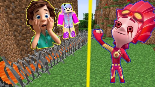 ДЕВУШКА И ДИМ ДИМЫЧ ЗАЩИЩАЮТ БАЗУ ДОМ ОТ ФАЕРА EXE МОНСТР В МАЙНКРАФТ БИТВА ФИКСИКИ MINECRAFT