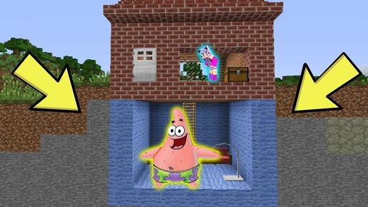 ПАТРИК ЖИВЁТ ПОД ДОМОМ ДЕВУШКА НУБ СПАНЧ БОБ В МАЙНКРАФТ ТРОЛЛИНГ НУБИК ИГРАЕТ В MINECRAFT