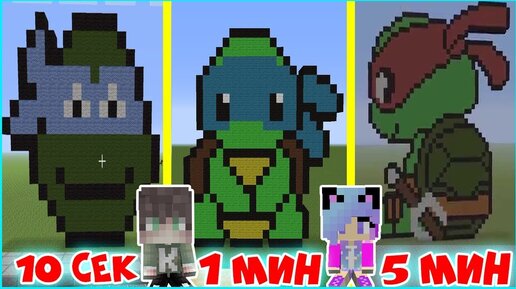 ПРО И ДЕВУШКА НУБ СТРОЯТ ЧЕРЕПАШКИ НИНДЗЯ ЗА 5 МИНУТ ЗА 1 МИНУТА 10 СЕКУНД MINECRAFT ПОСТРОЙКА