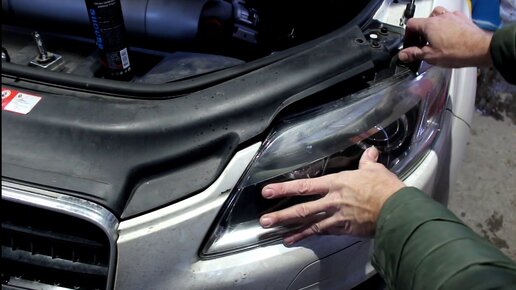 Ауди Q7 2008 Audi Q7 3,0 дизель Замена ламп в передних фарах