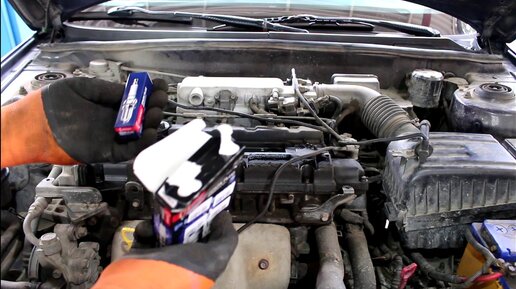 Замена свечей зажигания и высоковольтных проводов на Hyundai Elantra 2,0 Хендай Элантра 2002 года