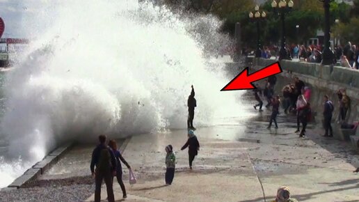 Люди Ловят Гигантские Волны в ЯЛТЕ. Вид на Ночную Ялту