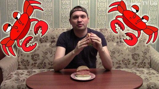 Сделал Двойной Крабсбургер. Снимаю пробу