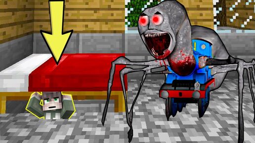 СКРЫВАЮСЬ ПОД КРОВАТЬЮ ОТ СТРАШНЫЙ ПАРОВОЗИК ТОМАС ПАУК В МАЙНКРАФТ ТРОЛЛИНГ ВСЕ МОНСТРЫ SCP
