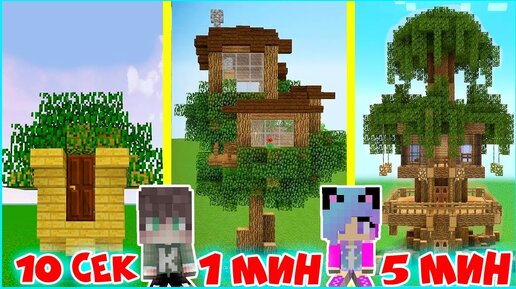 КОЛЯН И ДЕВУШКА СТРОЯТ ДОМ НА ДЕРЕВЕ ЗА 10 СЕКУНД 1 МИНУТ 5 МИНУТ В МАЙНКРАФТ БИТВА СТРОИТЕЛЕЙ