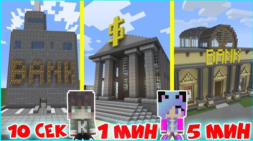 ПРО И ДЕВУШКА НУБ СТРОЯТ БАНК ЗА 5 МИНУТ ЗА 1 МИНУТА 10 СЕКУНД БИТВА СТРОИТЕЛЕЙ В МАЙНКРАФТ