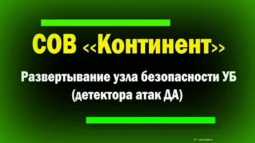 СОВ Континент / Развертывание узла безопасности УБ (детектора атак ДА) / IDS / IPS