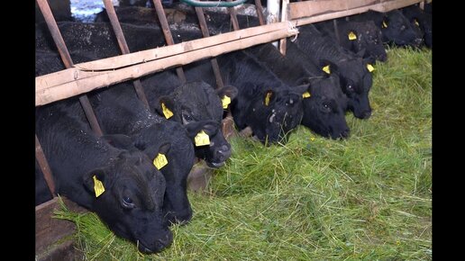 Мясной скот Абердин-Ангусской породы. Молодняк бычков на откорме. КФХ Александра Москвина.