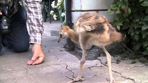 Сельский туризм. Ручной Венценосный журавль в птичьем парке Сергея Корниенко