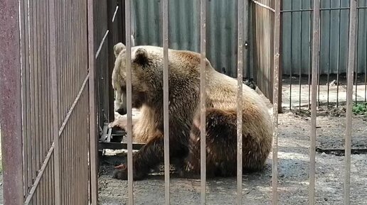 Медведь по кличке "Бурый" смешно сидит и кушает