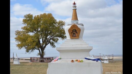 Место калмыцкой силы.Священный тополь в степи и буддийские ступы