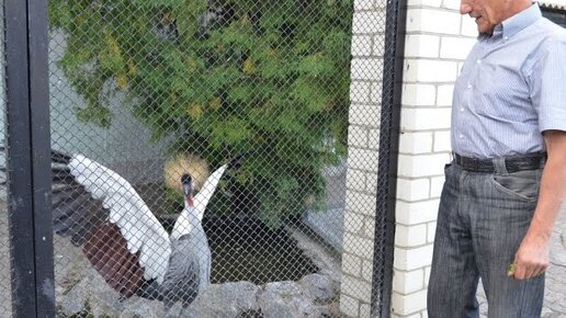 Сельский туризм.Танцующий Венценосный журавль в птичьем парке Сергея Корниенко