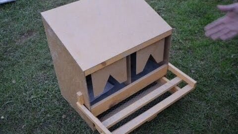 Деревянный гнездовой ящик для кур на два гнезда, с яйцесборником