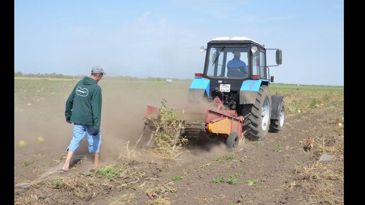 Картофелекопалка для выкапывания плёнки с капельной лентой на поливном арбузе.