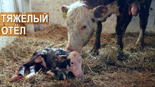 18+ Тяжёлый отёл при неправильном предлежании телёнка. Обучающее видео. Приём телёнка.