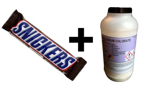 Snickers + Хлорат калия = Реактивная реакция!