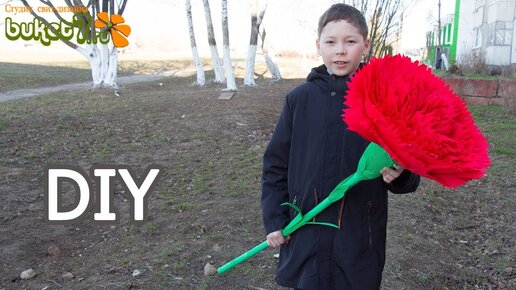 Ростовая гвоздика из гофрированной бумаги. Как сделать ростовой цветок. Пошаговая инструкция. DIY
