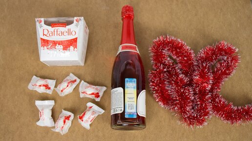 Взяли шампанское, конфеты, мишуру и сделали новогоднюю поделку