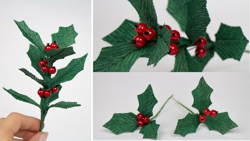 DIY ВЕТКИ С ЯГОДАМИ ☆ Падуб остролистный из гофрированной бумаги ☆ Мастер класс crepe paper flowers