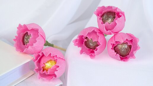 Цветы из конфет и гофрированной бумаги МК