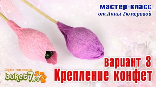 Крепление конфет при помощи гофрированной бумаги. Мастер-класс. Букеты из конфет