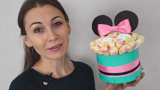 БУКЕТ ИЗ МАРШМЕЛЛОУ В КОРОБКЕ Подарок ДЕВОЧКЕ своими руками МИККИ МАУС в шляпной коробке marshmallow