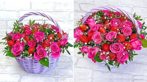 Идея: Летний букет своими руками. Букет с клубникой и цветами.