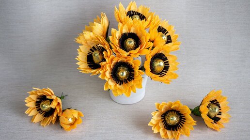 Как сделать подсолнухи из конфет // Цветы из гофрированной бумаги // DIY Свитдизайн
