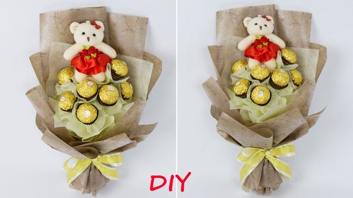 Букет из конфет Ферреро Роше и плюшевого мишки. Diy на день Рождения своими руками