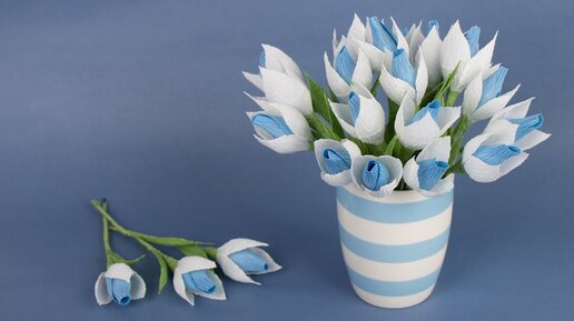Подснежники из гофрированной бумаги. Подснежники из конфет. Мастер класс