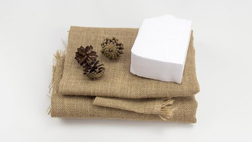 Простая идея: из мешковины, шишек и пенопласта сделали новогоднюю поделку.
