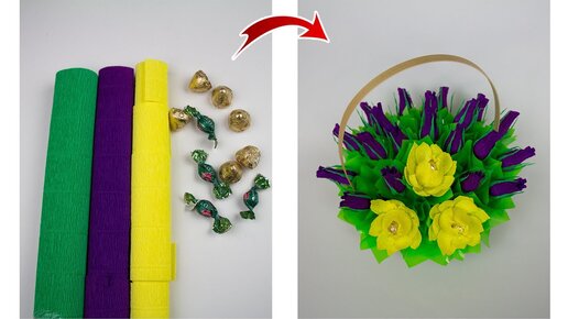 Букет из конфет в корзине на 8 марта. Подарки и поделки своими руками.