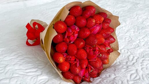 Как сделать БУКЕТ ИЗ КЛУБНИКИ И ТЮЛЬПАНОВ. Вкусная идея: Фрукт букет своими руками