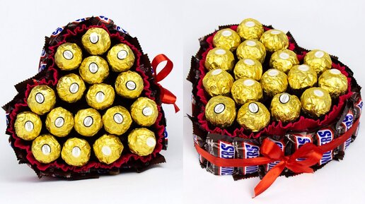 Торт из конфет. Вкусное сердце из Сникерсов и Ферреро Роше ко Дню Святого Валентина