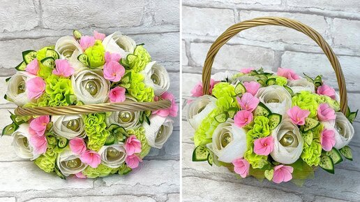 Корзинка с цветами из конфет. Сладкий букет своими руками