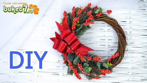 Новогодний (Рождественский) венок с ягодами илекса своими руками ☆ Поделки и подарки на Новый Год
