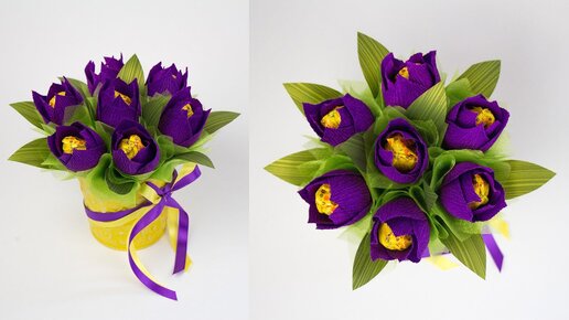 Мини Букет с тюльпанами из конфет. Поделки и подарки своими руками.