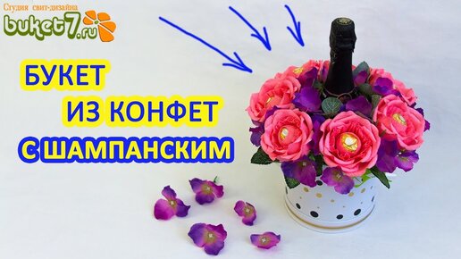 Букет из конфет с шампанским в шляпной коробке // Пошаговый мастер класс // Buket7ruTV #Diy
