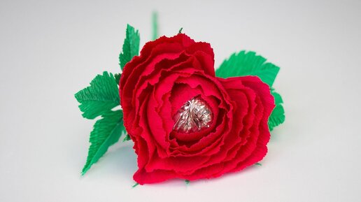 Идея: Валентинка на 14 февраля. Цветок - Роза Сердце с конфетой из гофрированной бумаги