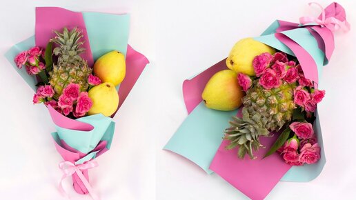 Как сделать букет из фруктов и цветов своими руками. Букет из груш с ананасом и розами DIY