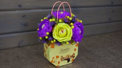 Сумочка из коробки конфет. Сладкая композиция из гофрированной бумаги.