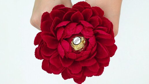 Быстро и просто: Георгины из конфет и гофрированной бумаги