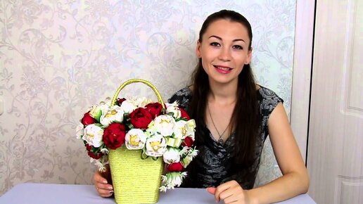 Презентация нового мастер-класса сумочки с пионами из конфет. Поделки своими руками.
