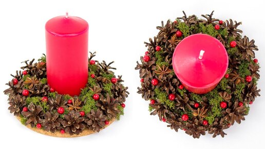 Подсвечник из шишек и мха своими руками. Легко и просто поделки на Новый Год