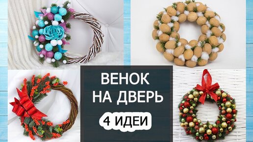 4 идеи НОВОГОДНИЙ (РОЖДЕСТВЕНСКИЙ) ВЕНОК НА ДВЕРЬ своими руками ☆ Поделки Новый Год 2020 ☆ DIY