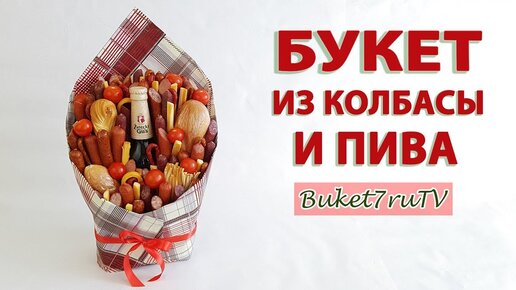 Как сделать мужской букет из колбасы и пива. Пивной букет из еды своими руками. Подарки с Buket7ruTV