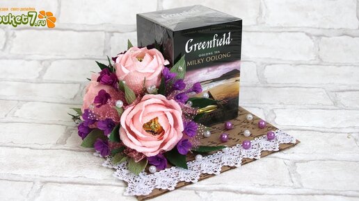 Подарки своими руками ☆ Оформление коробки чая цветами из конфет ☆ Diy ☆ Упаковка подарков