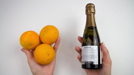 Взяли мандарины и шампанское и сделали фруктовый букет. Идея подарка на зимние праздники