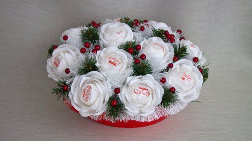 Как собрать новогоднюю корзину с розами из конфет своими руками? Новогодний подарок. Идея DIY