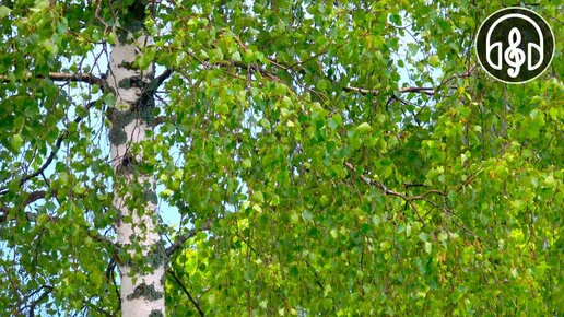 Успокаивающий шум листвы деревьев, звуки ветра и пение птиц.